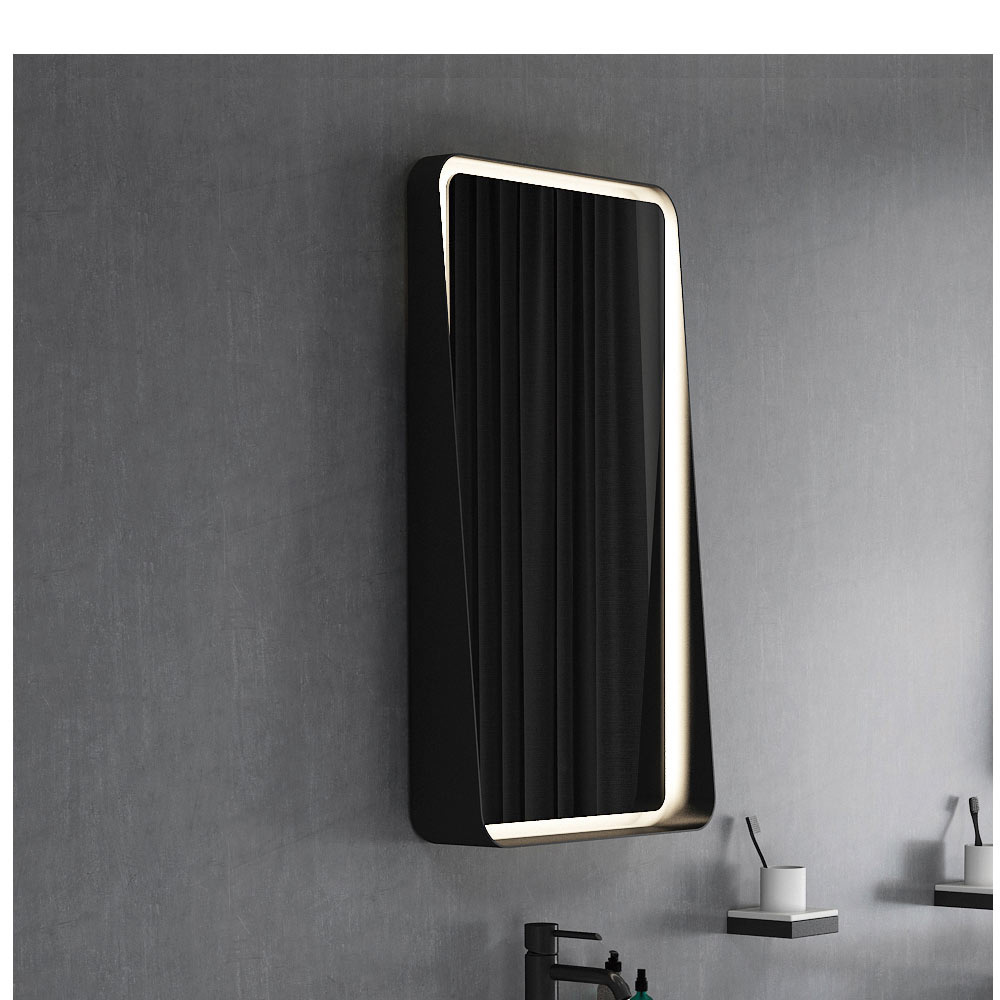 Φωτιζόμενος Καθρέπτης Led, με μαύρο μεταλλικό πλαίσιο με ασύμμετρη εσοχή