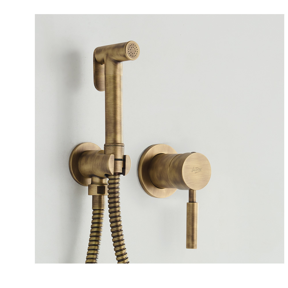 Μίκτης Εντοιχισμού 2 Οπών Με Ντουζάκι Για Μπιντέ La Torre Flush Mix 12211-221 Bronze Brushed