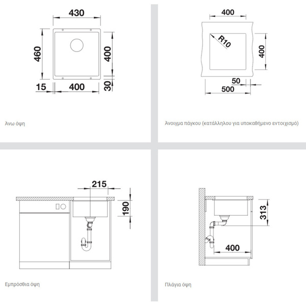 - Εργονομικό ύψος για χρήση μεγάλων σκευών
