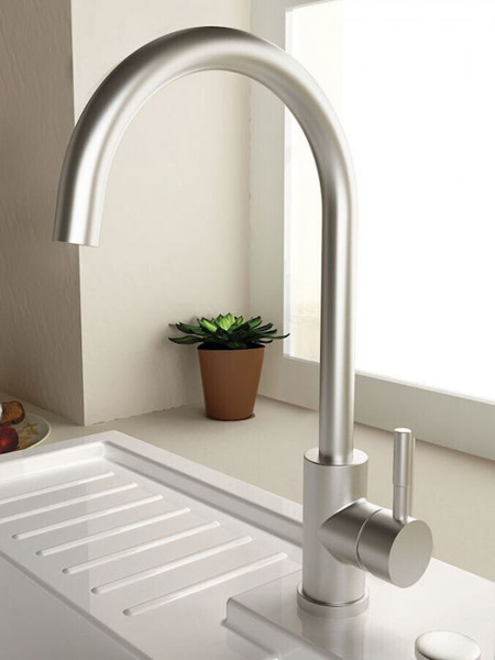 Μπαταρία κουζίνας με αποσπώμενο, συρόμενο ντουζ δύο ροών, σπιράλ 45 cm βαρέως τύπου, σύμφωνα με τα standards DVGW, κατάλληλο για πόσιμο νερό και με μεγάλη αντοχή σε αυξομειώσεις της πίεσης. Οικονομία στο νερό μέχρι και 30% σε σχέση με τις κοινές μπαταρίες χάρη στον ειδικό σχεδιασμό και το φίλτρο της μπαταρίας. Πολύ χαμηλό επίπεδο θορύβου κατά τη χρήση. Άριστη ποιότητα επινικέλωσης 5 στρωμάτων, που εγγυάται ευκολία στο καθάρισμα και λάμψη για πολλά χρόνια χρήσης. Όλα τα επιμέρους υλικά κατασκευής, όπως λάστιχα, φλάντζες, μηχανισμοί είναι πιστοποιημένα και κατάλληλα για πόσιμο νερό.