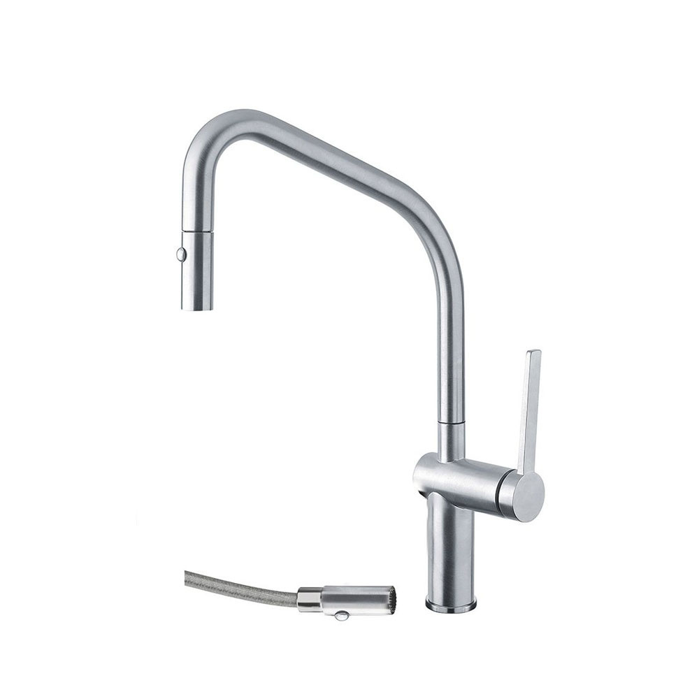 Μπαταρία νεροχύτη με περιστρεφόμενο κορμό, σπιράλ 45 cm βαρέως τύπου, σύμφωνα με τα standards DVGW, κατάλληλο για πόσιμο νερό και με μεγάλη αντοχή σε αυξομειώσεις της πίεσης. Οικονομία στο νερό μέχρι και 30% σε σχέση με τις κοινές μπαταρίες χάρη στον ειδικό σχεδιασμό και το φίλτρο της μπαταρίας. Πολύ χαμηλό επίπεδο θορύβου κατά τη χρήση. Άριστη ποιότητα επινικέλωσης 5 στρωμάτων, που εγγυάται ευκολία στο καθάρισμα και λάμψη για πολλά χρόνια χρήσης. Όλα τα επιμέρους υλικά κατασκευής, όπως λάστιχα, φλάντζες, μηχανισμοί είναι πιστοποιημένα και κατάλληλα για πόσιμο νερό.