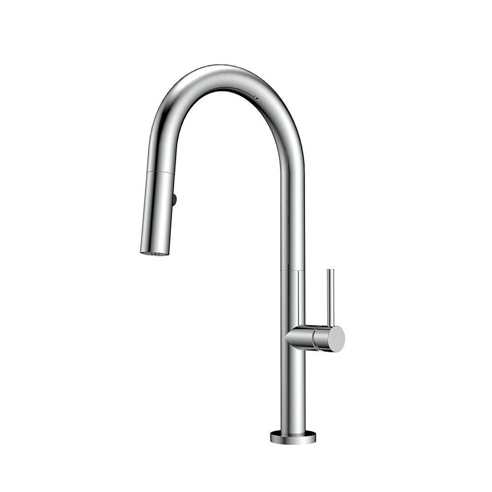 Μπαταρία κουζίνας Orabella, Vertigo με αποσπώμενο, συρόμενο ντουζ δύο ροών με δύο λειτουργίες shower και spray. Πρόκειται για μια μοντέρνα μπαταρία πάγκου, η οποία είναι κατασκευασμένη από τον οίκο Orabella, από υψηλής ποιότητας ορείχαλκο.
