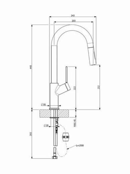 Μπαταρία κουζίνας με αποσπώμενο, συρόμενο ντουζ δύο ροών, σπιράλ 45 cm βαρέως τύπου, σύμφωνα με τα standards DVGW, κατάλληλο για πόσιμο νερό και με μεγάλη αντοχή σε αυξομειώσεις της πίεσης. Οικονομία στο νερό μέχρι και 30% σε σχέση με τις κοινές μπαταρίες χάρη στον ειδικό σχεδιασμό και το φίλτρο της μπαταρίας. Πολύ χαμηλό επίπεδο θορύβου κατά τη χρήση. Άριστη ποιότητα κατασκευής, που εγγυάται ευκολία στο καθάρισμα και λάμψη για πολλά χρόνια χρήσης. Όλα τα επιμέρους υλικά κατασκευής, όπως λάστιχα, φλάντζες, μηχανισμοί είναι πιστοποιημένα και κατάλληλα για πόσιμο νερό.