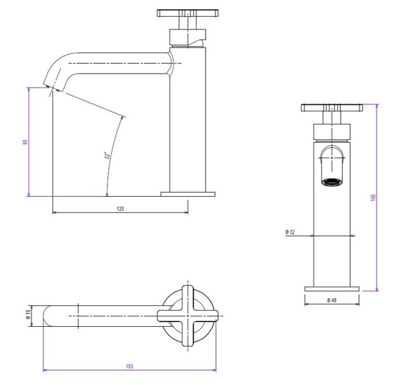 Μπαταρία Νιπτήρος La Torre Elle Cross 38020-410 Black Brushed