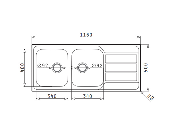 • Διαστάσεις Νεροχύτη: 1160 x 500mm