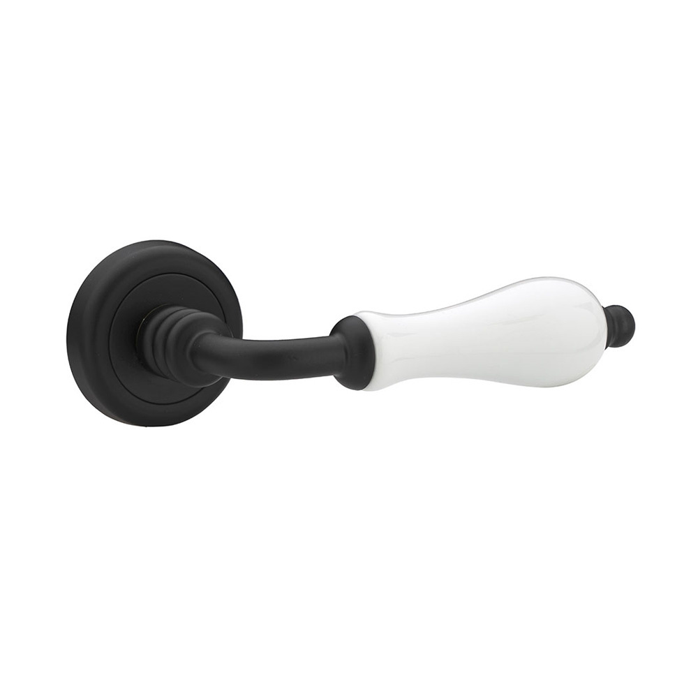 Πόμολο Μεσόπορτας Με Ροζέτα Roline K306-03 Ζεύγος Μαύρο Λευκή Πορσελάνη