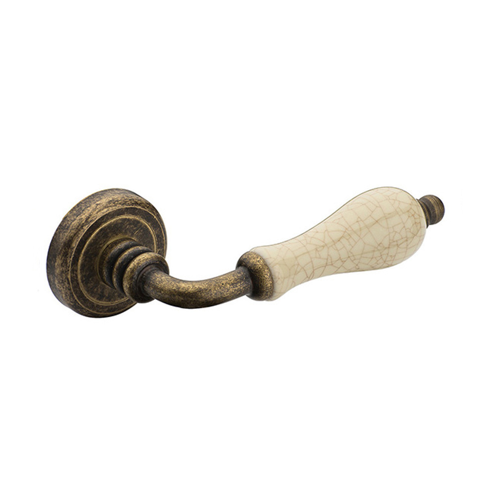 Πόμολο Μεσόπορτας Με Ροζέτα Roline K315-03 Ζεύγος Αντικέ Μπεζ Κρακελέ Πορσελάνη
