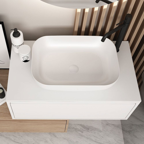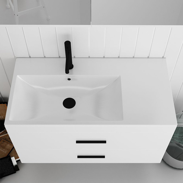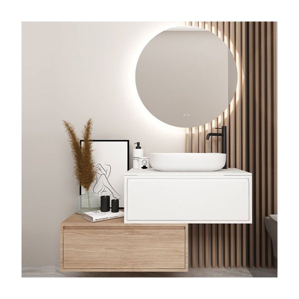 Κρεμαστό έπιπλο μπάνιου Drawer asymmetrical – σειρά επίπλων Drawer. Ένα έπιπλο μπάνιου, βαρέως τύπου ιδανικό για οικιακή χρήση. Αποτελείται από, κρεμαστή βάση με δύο συρτάρια με μηχανισμό κλεισίματος soft close (Blum) και επικάλυψη από ομοιογενές υλικό σε λευκό. Υλικό επίπλου μελαμίνη με PVC ή mdf για μεγαλύτερη αντοχή στο χρόνο και σε μεγάλη γκάμα χρωματικών επιλογών.