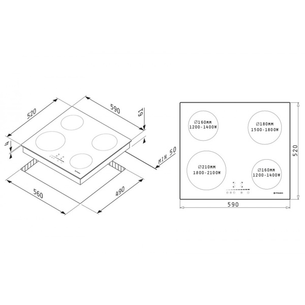 Pyramis PHC61410IFB αυτόνομη εστία με πλαίσιο. 4 κεραμικές εστίες hi-light