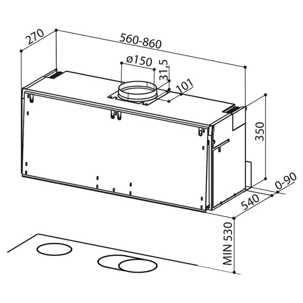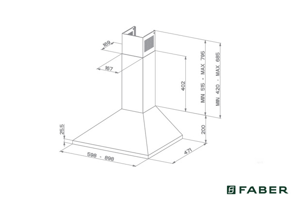 Απορροφητήρας Faber Καμινάδα 90cm. Απορροφητικότητα: 700m³/h Επίπεδο θορύβου: 53-67dB