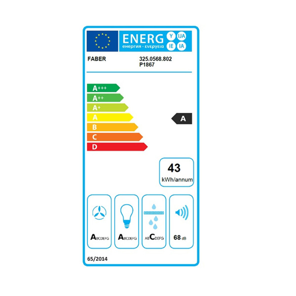 Απορροφητήρας Faber Καμινάδα 60cm. Απορροφητικότητα: 590m³/h Επίπεδο θορύβου: 60-68dB