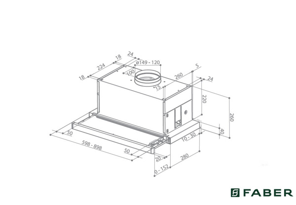 Απορροφητήρας Faber Συρόμενος 60cm. Απορροφητικότητα: 420m³/h Επίπεδο θορύβου: 57-69dB