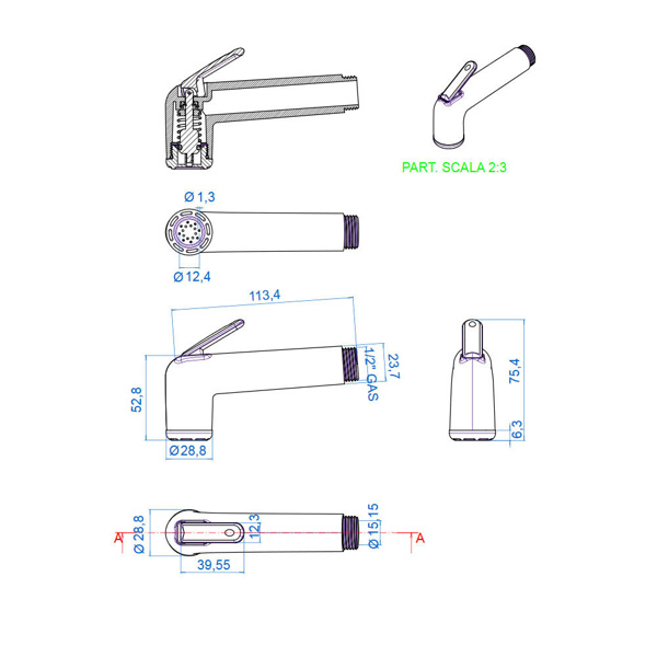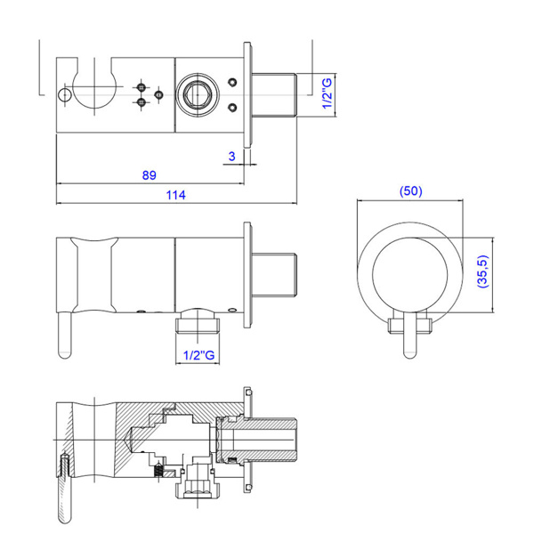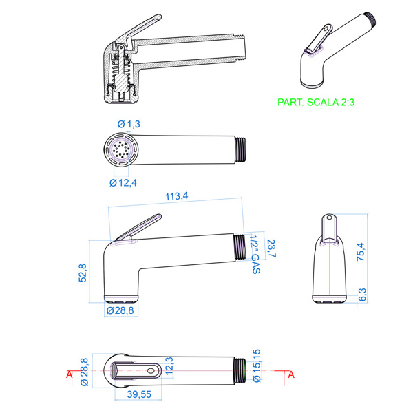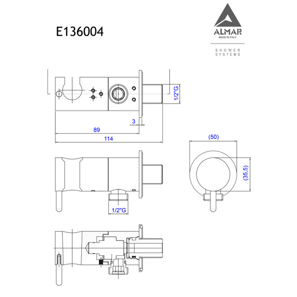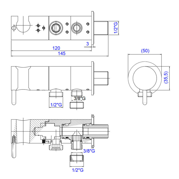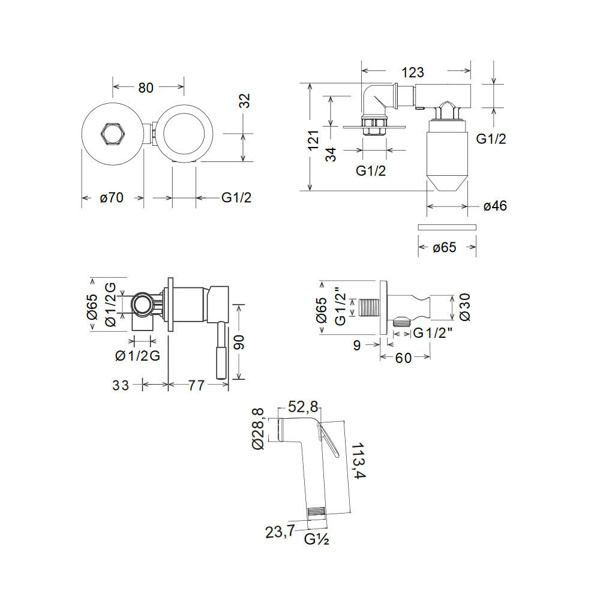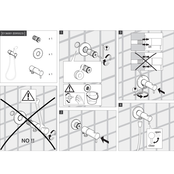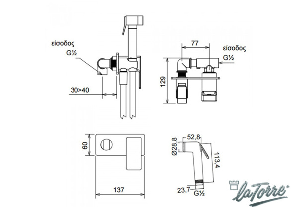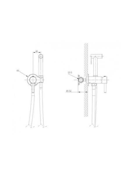 Diana, μοντέρνα μπαταρία εντοιχισμού μπιντέ με σπρέι κατασκευασμένη από ορείχαλκο σετ με smooth σπιράλ (PVC - 1.2 m)