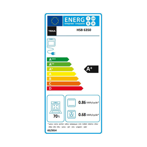 Φούρνος Άνω Πάγκου Pyramis. Ενεργειακή κλάση: A, Χωρητικότητα 78L, Χρώμα: Λευκός