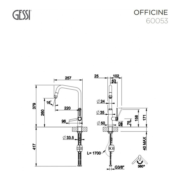 Μπαταρία Κουζίνας Gessi Officine 60053-599 Ντους Inox/Black Matt finish