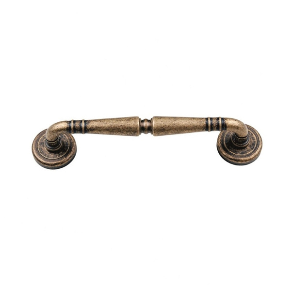 Ιταλική λαβή εξώπορτας για πόρτες με ιδιαίτερο και διαχρονικό design. Κατασκευασμένη από άριστης ποιότητας ορείχαλκο. Διατίθεται σε ΑΝΤΙΚΕ χρώμα. Κατάλληλη και για περιοχές με υγρασία και υψηλές θερμοκρασίες λόγω του υλικού κατασκευής της. Η κάθε συσκευασία περιέχει 1 τεμάχιο με όλα τα απαραίτητα εξαρτήματα.