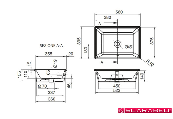 Νιπτήρας Μπάνιου Scarabeo Tech 8037 54,5x35,8cm