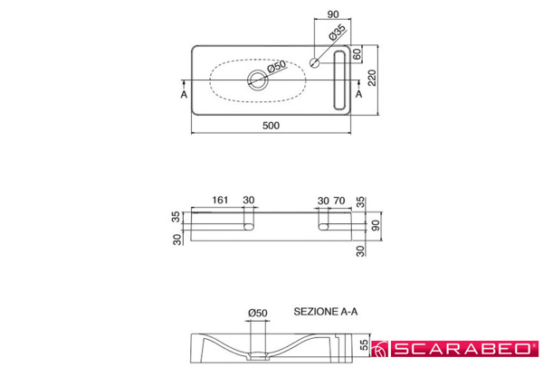Νιπτήρας Μπάνιου Scarabeo Hung 1512 50x22cm