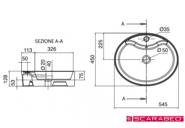 Νιπτήρας Μπάνιου Scarabeo In-Out 8021 Ø39.5cm