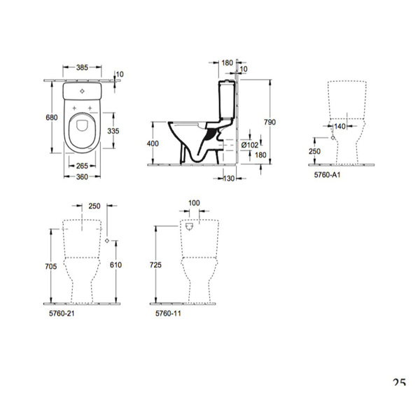 Λεκάνη Villeroy & Boch Με καζανάκι πλευρικής/οπίσθιας παροχής